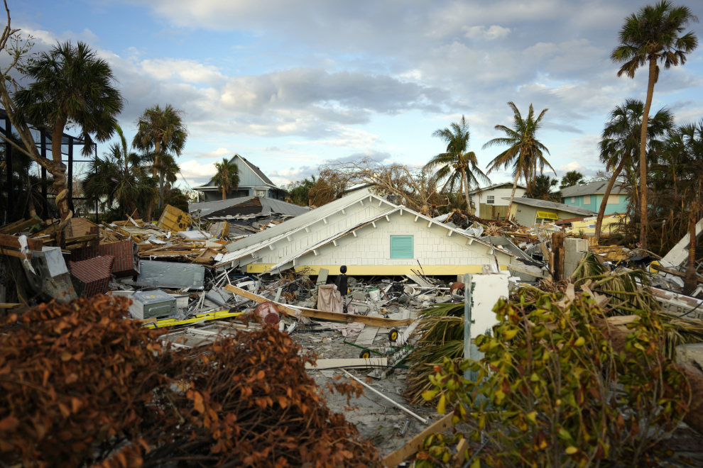 AP Photo/Rebecca Blackwell Only the roof remains of a home, Wednesday, Oct. 5, in Fort Myers Beach, Fla., after the passage of Hurricane Ian.