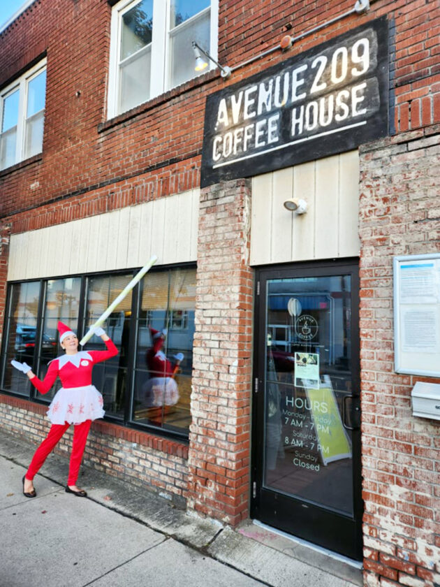 PHOTO PROVIDED Downtown Lock Haven, Inc.’s very own Elf on the Shelf (DLH Manager Kira Rosamilia) will be popping up around downtown weekly from now until Haven Holidays Harmonies on Nov. 26.