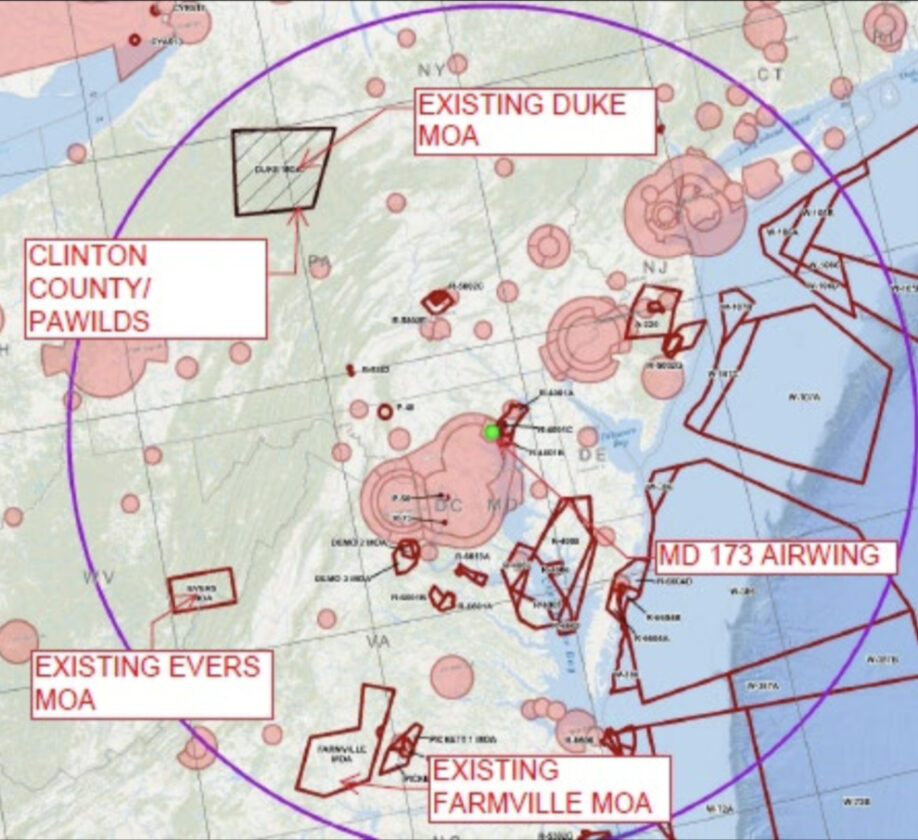 The proposal came from the Maryland Air National Guard, which currently conducts training drills in the area at 8,000 to 17,000 feet above sea level. The Guard is looking to conduct low-altitude drills in the area. According to the proposal, this would mean planes flying as low as 1,000 feet above ground level at a minimum of 170 days out of the year.