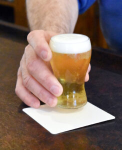 LAURA JAMESON/THE EXPRESS Vinnie presents one of the new beers the business has begun making.