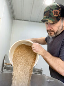PHOTOS PROVIDED Good Neighbor Craft House Head Brewer Jim Rogers adds grain to the mash tun during a recent brew day.