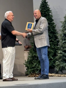 - PHOTO PROVIDED Senior Pastor Tim Boger is pictured accepting a plaque on behalf of Big Woods Bible Church.