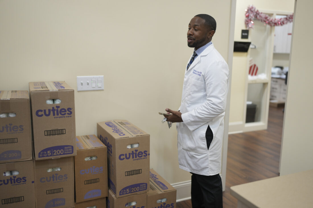 AP Photo/George Walker IV Pharmacist Marcus Johnson gives instructions to an employee Monday, Dec. 9, in Murfreesboro, Tenn. The pharmacy provides diapers free of charge to customers who qualify through the state’s TennCare Diaper Benefit.