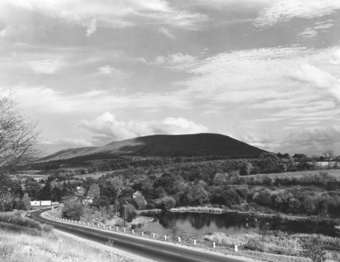 PHOTO COURTESY OF PENN STATE UNIVERSITY LIBRARIES This famous photo of Mount Nittany with Thompson Pond in the foreground by photographer Robert Beese was taken in the 1940s. The image shows a panoramic view of Mt. Nittany taken from the spot where College Avenue now goes under University Drive. It was on this mountain in 1764 that explorer James Potter, the first settler to document their travels to the area, declared to his travelling attendant, “My Heavens, Thompson, I have discovered an empire!” upon witnessing the breathtaking view of Penns Valley, located on the opposite side of the mountain.