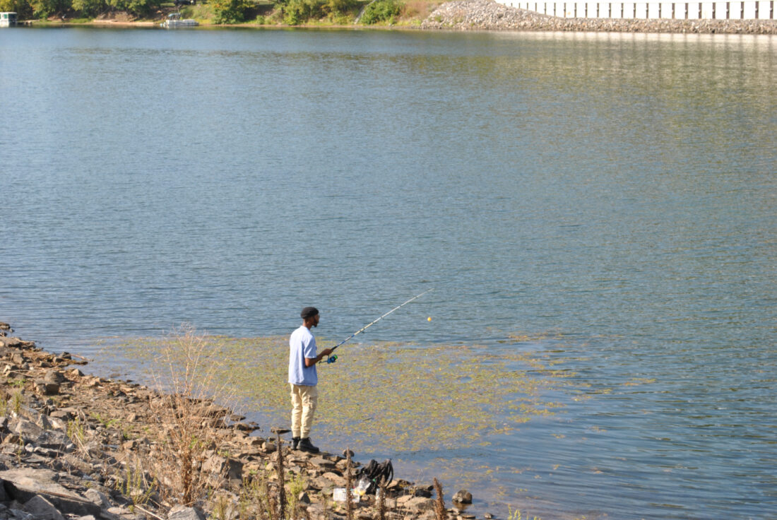 HUNTER SMITH/THE EXPRESS A man fishes in the Susquehanna River at Lock Haven.