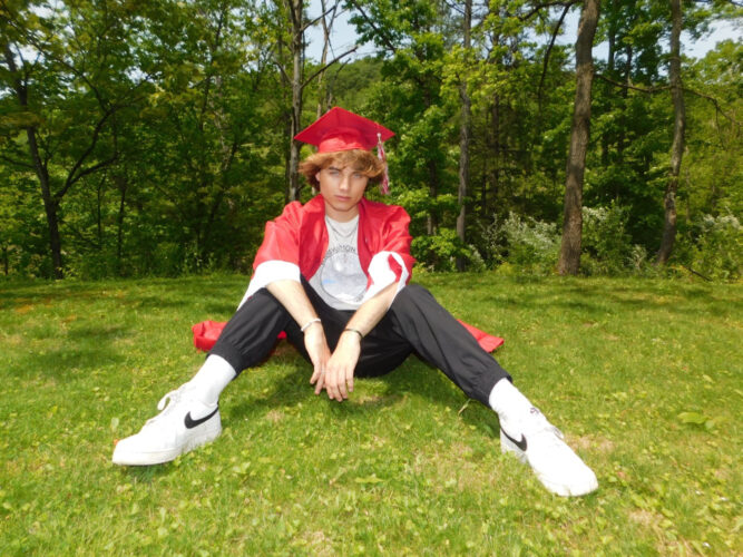 Trenton Grimes, of Bellefonte, poses for a photo in his graduation cap and gown.