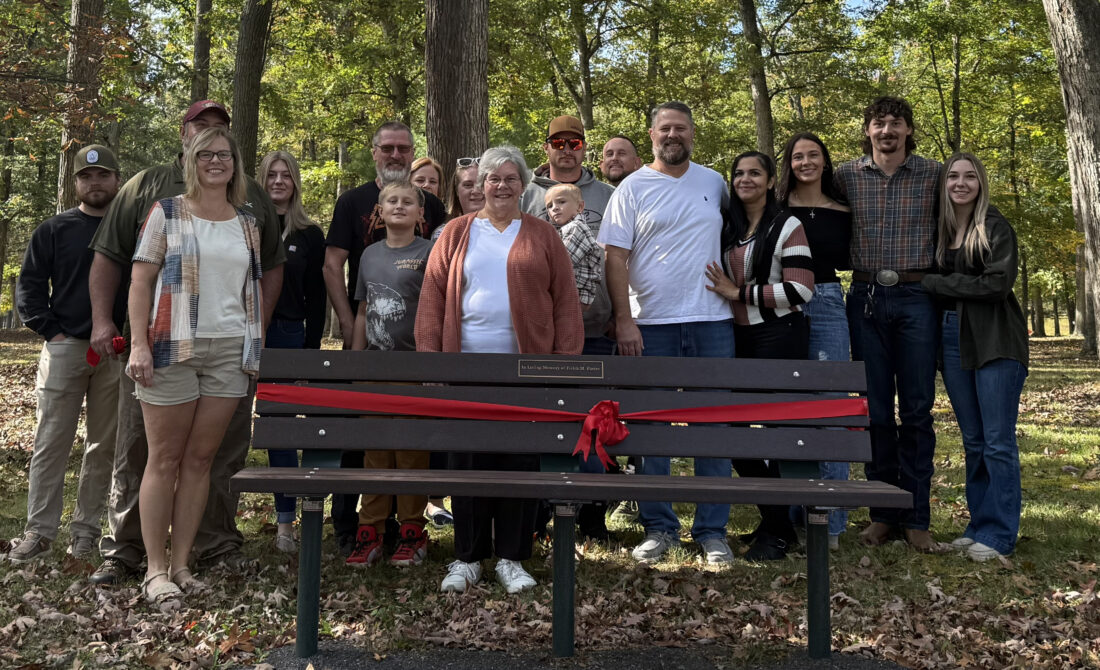 WOOLRICH — On Saturday, Oct. 4, with more than 60 people in attendance, the Pine Creek Township Recreation Committee celebrated the launch of its Memorial & Tribute Giving Program with a ribbon-cutting ceremony at Woolrich Park — officially unveiling the first three benches and two trees installed through the initiative-and honoring the memories of Fields Porter, Jim and Vera Saar and Steve Temple.