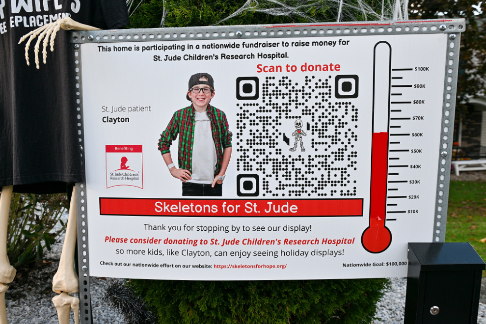 The fundraiser originated in Holly Springs, N.C., in 2020, with the Robertson family placing a St. Jude fundraising sign in their yard after a local TV station aired their skeleton Halloween display.