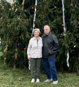 - LAURA TARANTELLA/THE EXPRESS Nick and Mary Cefelo are pictured in front of the tree they donated to the Freemasons, which is now decorated in Triangle Park.