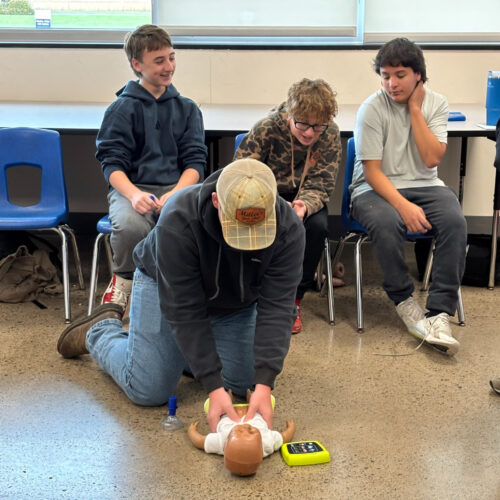 Students from Central Mountain High School’s CTE classes visited the students to provide high-quality, hands-on instruction and CPR certification utilizing the grant.