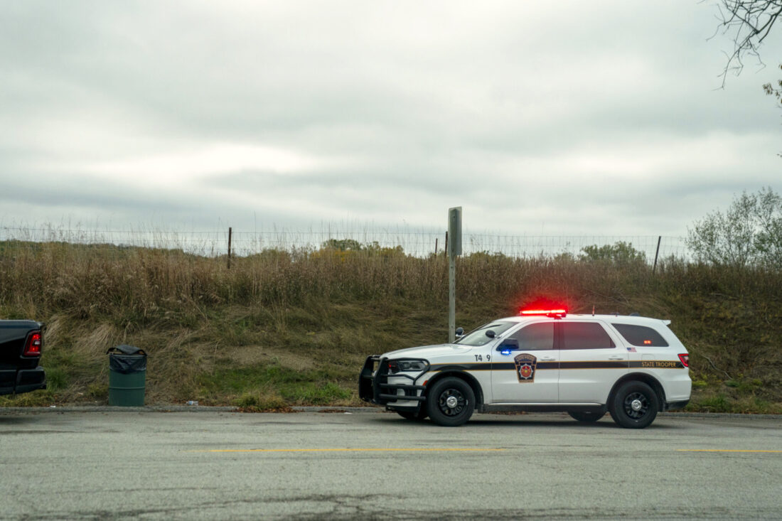 Jessica Kourkounis/For the Pennsylvania Capital-Star A state trooper makes a traffic stop along the Pennsylvania Turnpike between Pittsburgh and Harrisburg on October 14.