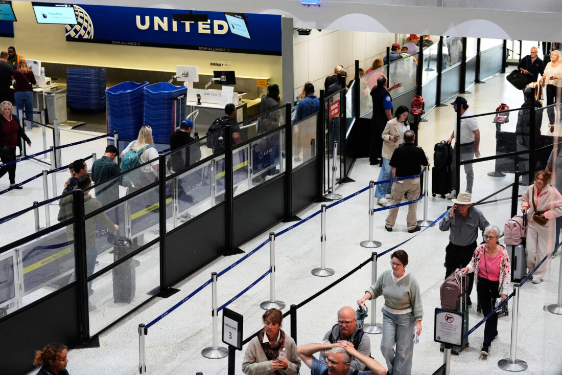 AP Photo/Ashley Landis Travelers stand in line at a security checkpoint at George Bush Intercontinental Airport on Friday, Nov. 7, in Houston.