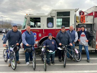 - PHOTO PROVIDED Dunnstown Fire Company members donate bikes outside of Walmart during Mark the Shark Toy Drive.