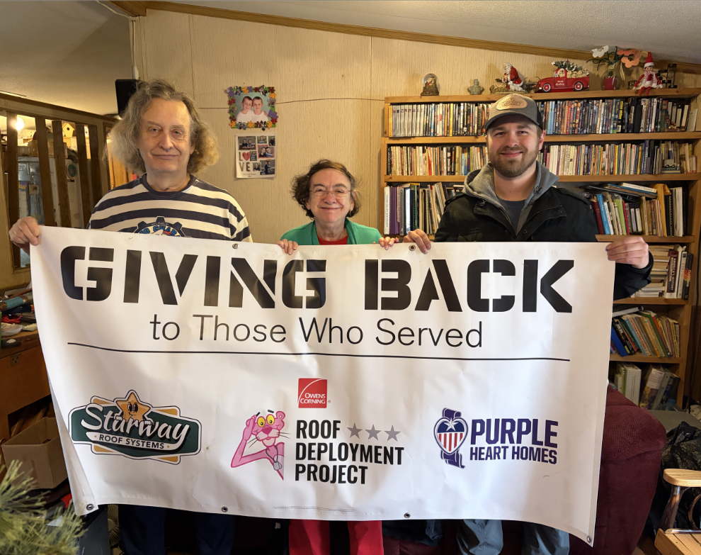 Completed at no cost to Sharpe and his wife, Cheryl, the approximately $15,000 project was made possible by the Owens Corning Roof Deployment Project in partnership with Purple Heart Homes, a nonprofit offering barrier-free housing solutions for service-connected disabled and aging veterans.