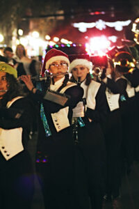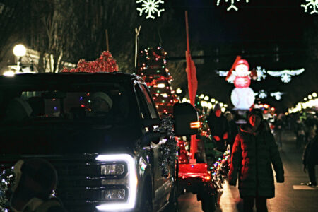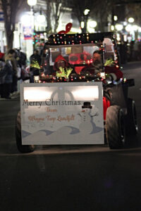 Festive floats and decorated vehicles provided by local businesses and community groups rolled along Main Street. They were joined by fire trucks, marching bands and Santa Claus himself, each performing or tossing candy to excited children along the parade route.