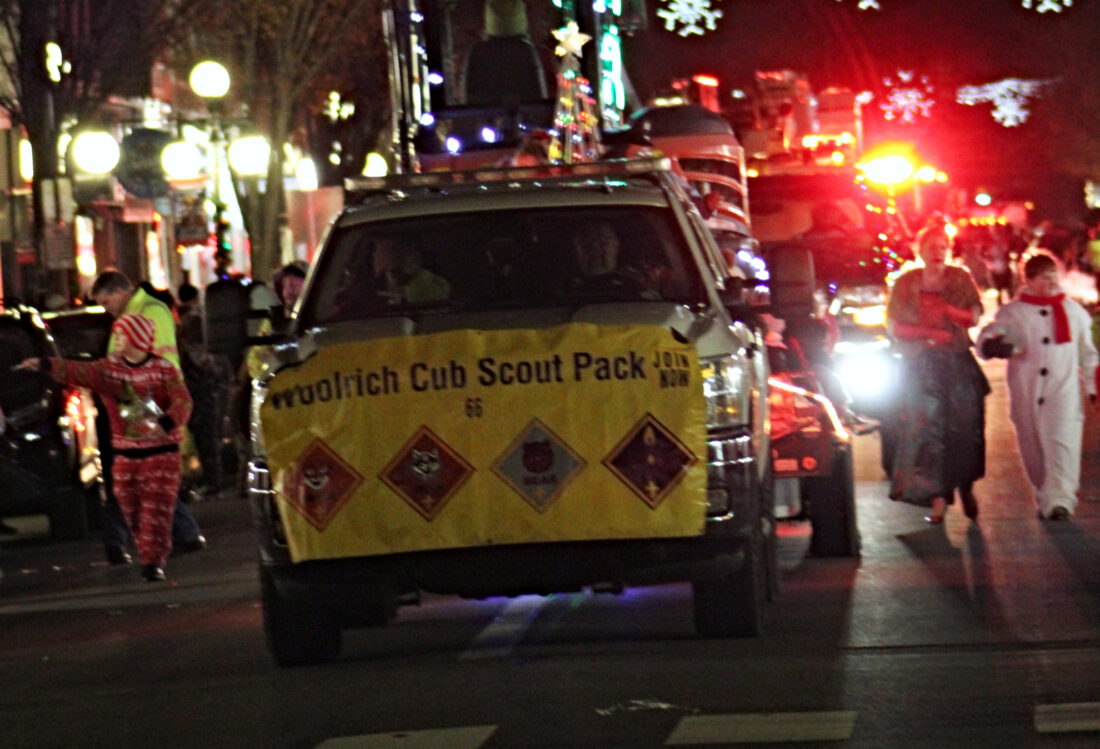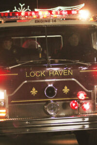 This year’s lineup featured a long list of community participants, including the Central Mountain High School and Sugar Valley Rural Charter School marching bands, Turbulence, Williamsport Wildcat Football Association, Lock Haven Lynx Gymnastics Team, Central PA Street Machines, Clinton County Legends Travel Baseball, Scout Pack 66, Lock Haven Catholic School, Wayne Township Landfill, State College Roller Derby, Central Mountain cheerleaders, Terry Banfill, McKenzie’s Home Inspections, Element 26 Twelve Days of Fitness, the Lock Haven City Fire Department, WSQV radio van and, of course, Santa.