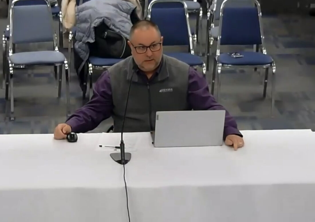 PHOTO PROVIDED Devopar Consulting’s President/Senior Consultant Chris Celmar is pictured during a presentation to the Keystone Central School District Board of Directors at its voting session Dec. 11. The board ultimately voted down the firm’s proposal to conduct a staffing study in a 3-5 vote.