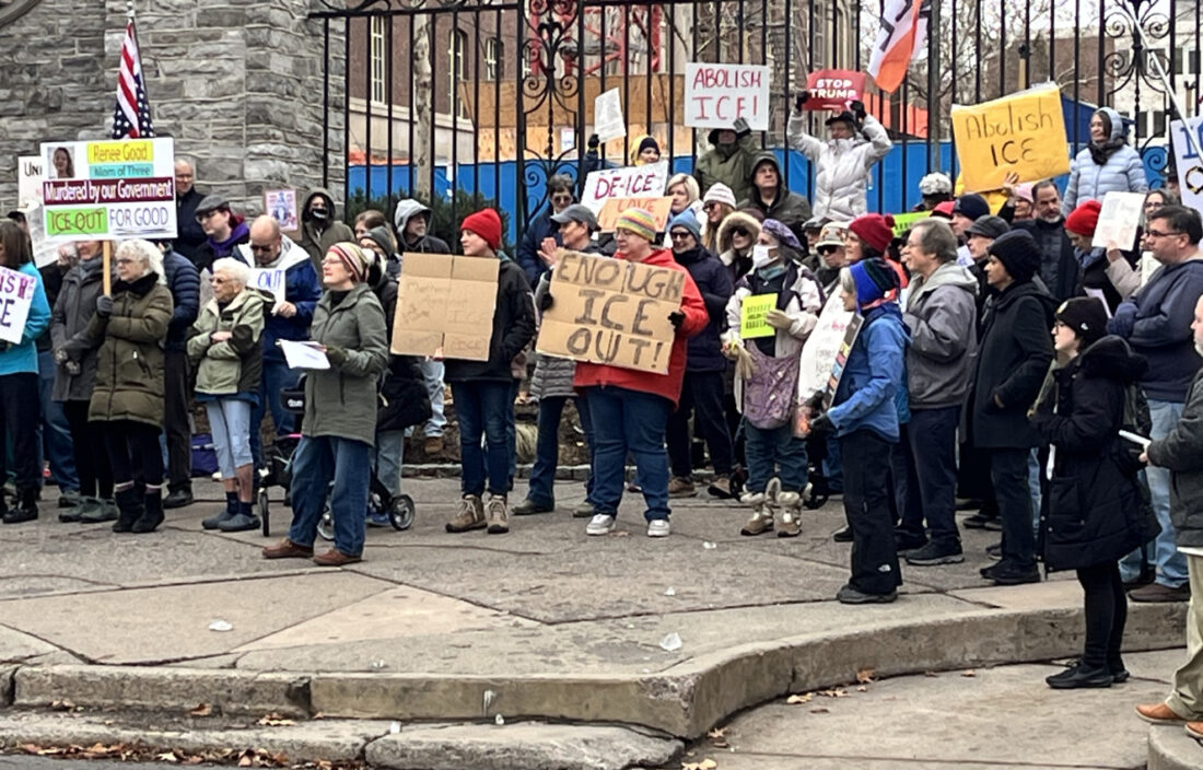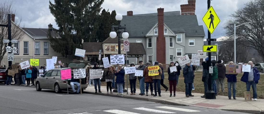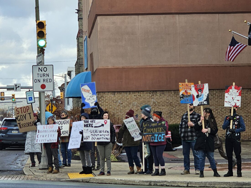- PHOTO COURTESY OF THE SUN GAZETTE Protesters lined Market Street in Williamsport over the weekend of Jan. 10 to rally against United States Immigration and Customs Enforcement in the wake of Renee Good’s death in Minneapolis on Jan. 7.