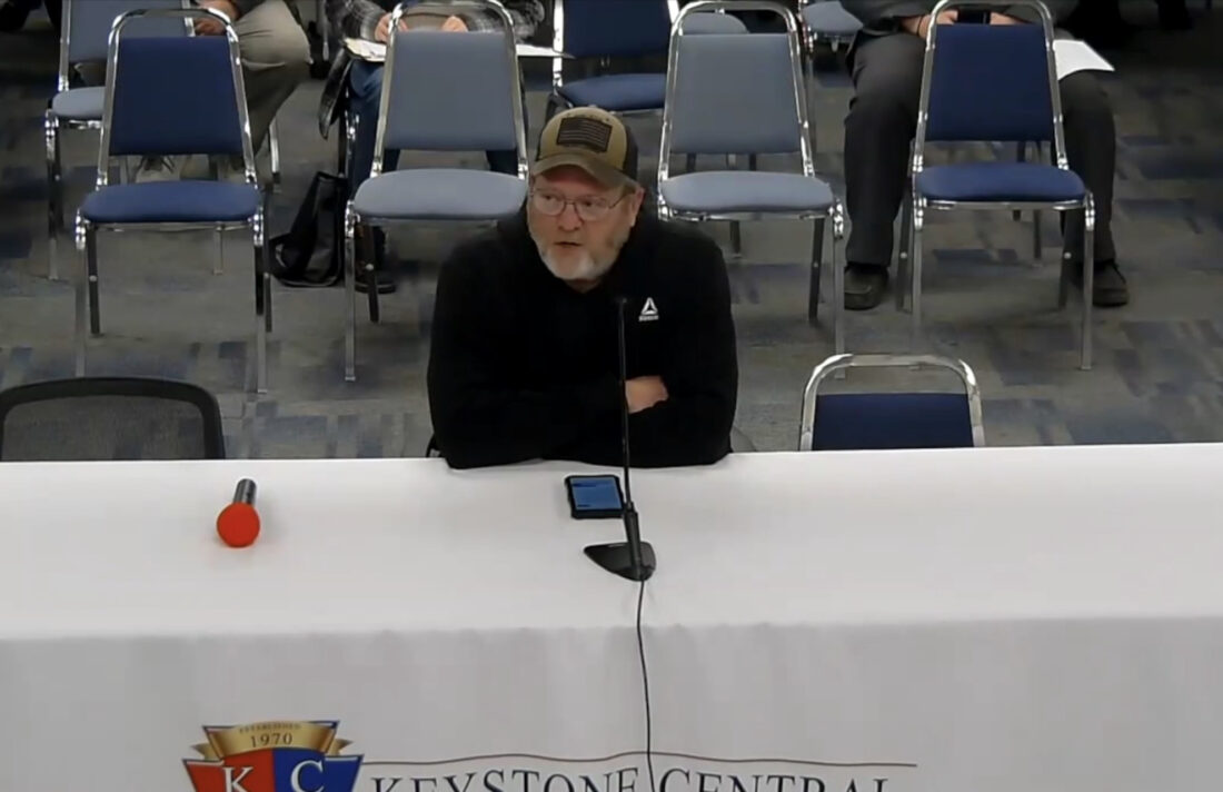 - PHOTO PROVIDED Former Keystone Central School District Board Member Roger Elling addresses the board during public comment at its work session on Thursday night.