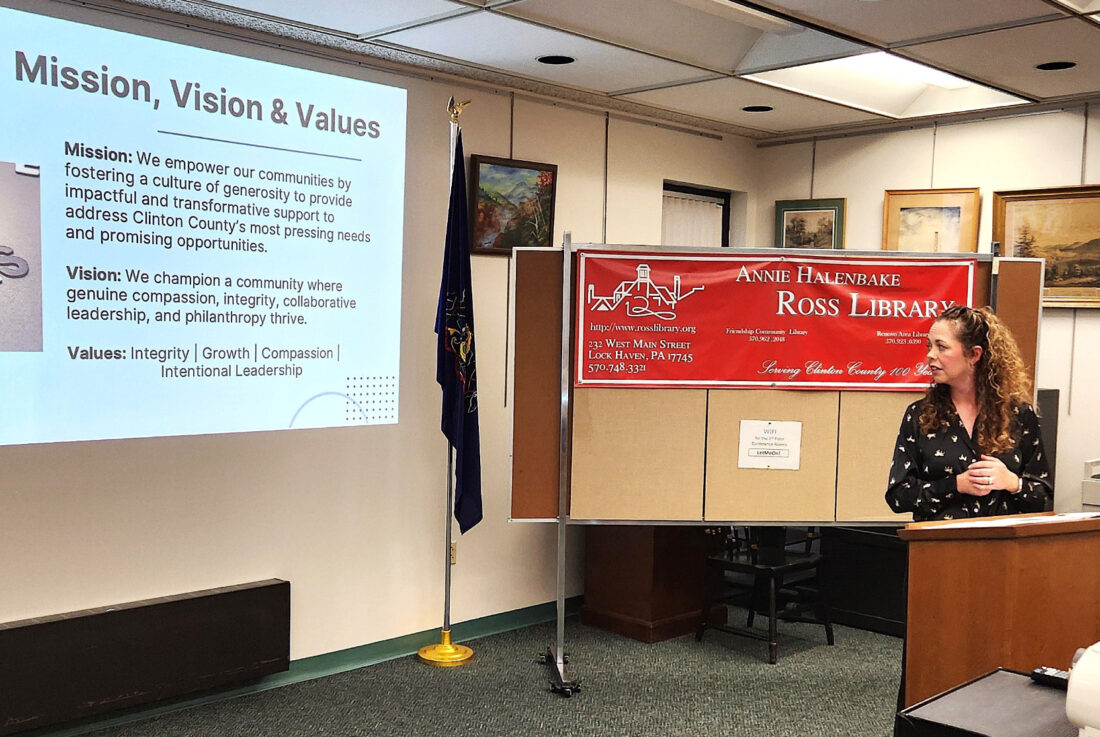 PHOTO PROVIDED Elizabeth Arnold, founder of Abundance Creative & Consulting, presents a Strategic Action Plan to the board of directors of the Clinton County Community Foundation at a recent meeting at the Ross Library in Lock Haven.