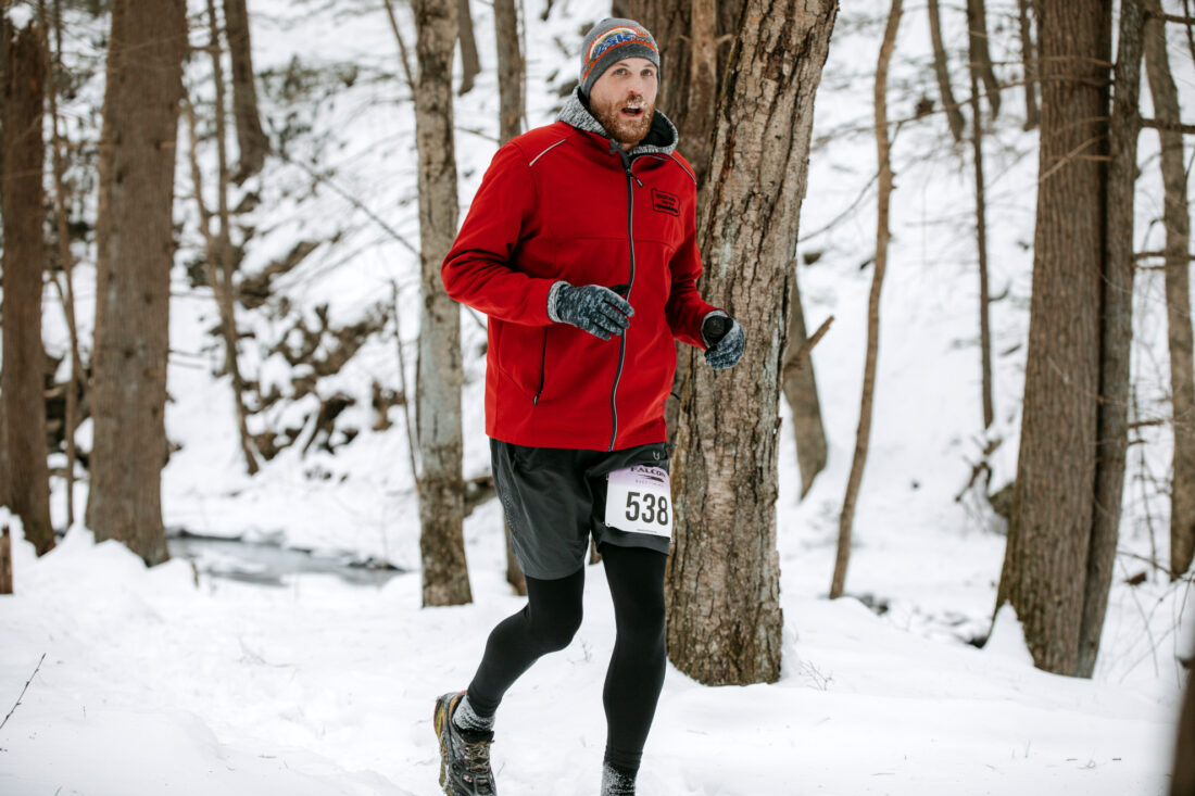 - PHOTO BY EMILY SHAFFER Frozen Snot participant, John Shaffer, of Jersey Shore, ran the event on Saturday and also volunteered his time in clearing and flagging the race course in the weeks leading up to the event.