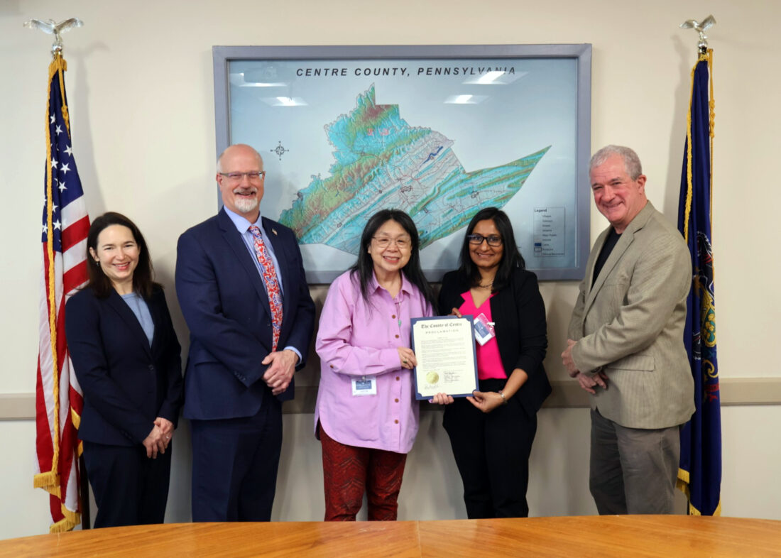 Representing the local Pan APIDA Circle, which serves as a liaison and advocate for the APIDA community in Centre County, Vicki Fong and Thilini Rupasinghe joined the commissioners for the proclamation.