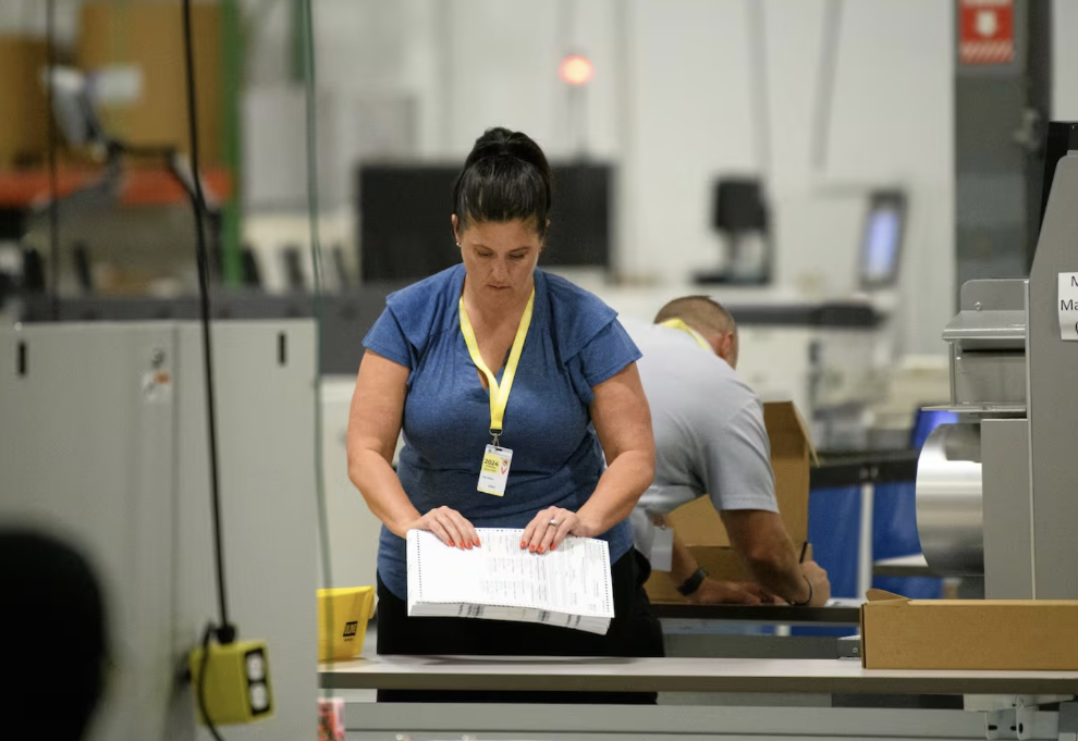An election worker prepares a batch of ballots to run through a ballot counting machine on Election Day in Philadelphia on November 5, 2024. The city held two special elections just weeks before the general election that year, part of a trend of frequent special elections in the state. (Photo by Kriston Jae Bethel for Votebeat)