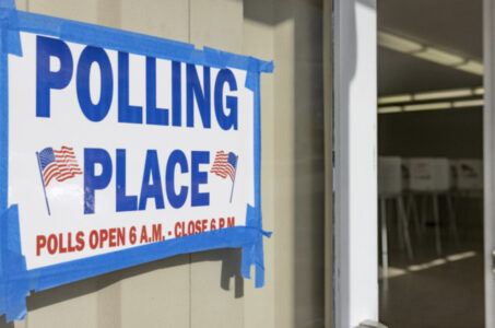 Photo by Austin Anthony/Kentucky Lantern via Penn Capital Star A sign directs voters at a polling place in Kentucky in 2024. The Trump administration has sued dozens of states, including Kentucky, for their voter rolls.