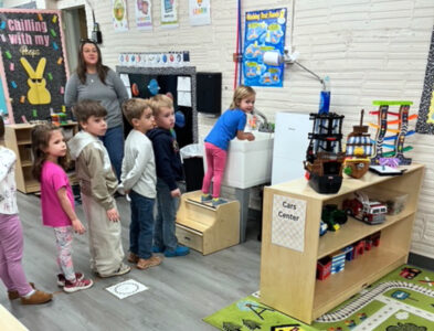 LAURA TARANTELLA/THE EXPRESS Children line up at the sink to test their handwashing skills.