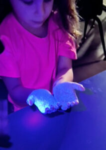 The glowing visuals helped students see firsthand why thorough handwashing is so important.