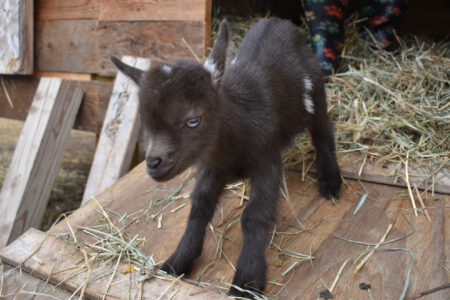 - HUNTER SMITH/THE EXPRESS Cocoa, one of five Nigerian Dwarf goats born last Tuesday to 7-year-old Bernie, is pictured.