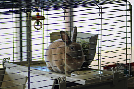ASHTON PETERS/FOR THE EXPRESS A rabbit is seen in its pen at Tails & Trails.