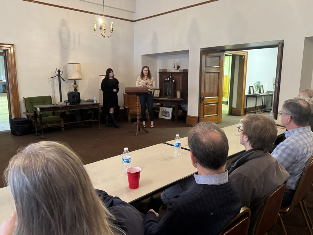 LAURA JAMESON/THE EXPRESS Clinton County Economic Partnership Tourism Director Melissa Dally and Chamber/Leadership Director Megan Wheeler spoke to attendees about the county’s outdoor recreation and how it ties into the city as well as the Enterprise Zone, a loan program offered to businesses.