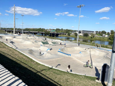 Right beyond this bridge, at the very northern end of the Principal Riverwalk, is the Lauridsen Skatepark, one of the nation’s largest. The 88,000-square-foot park opened in 2021 and provides many elements for beginners and advanced users. It was recently certified by USA Skateboarding to host global skateboarding events and competitions.