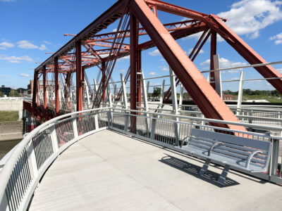 At the southern edge of the walk is the historic Red Bridge, formerly the Des Moines Union Railway Bridge. It is one of the few remaining links to Iowa’s golden age of railroading.