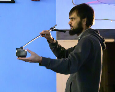 RALPH WILSON/Sun-Gazette Correspondent Photographer and story-teller Michael Kinney explains his use of a Go-Pro camera for underwater photography while recording fish populations along the West Branch of the Susquehanna River during a Trout Unlimited meeting in January.