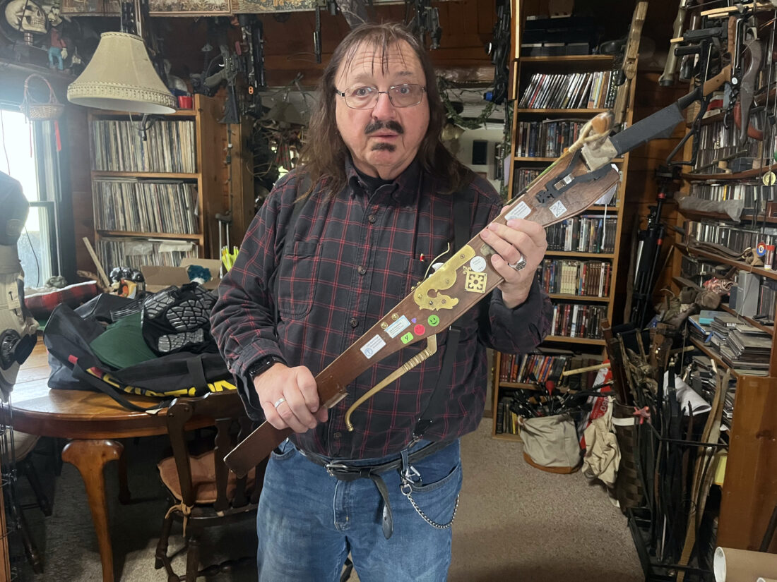PHOTO PROVIDED Dennis Greenaway, of Avis, poses for a photo with one of his crossbows.