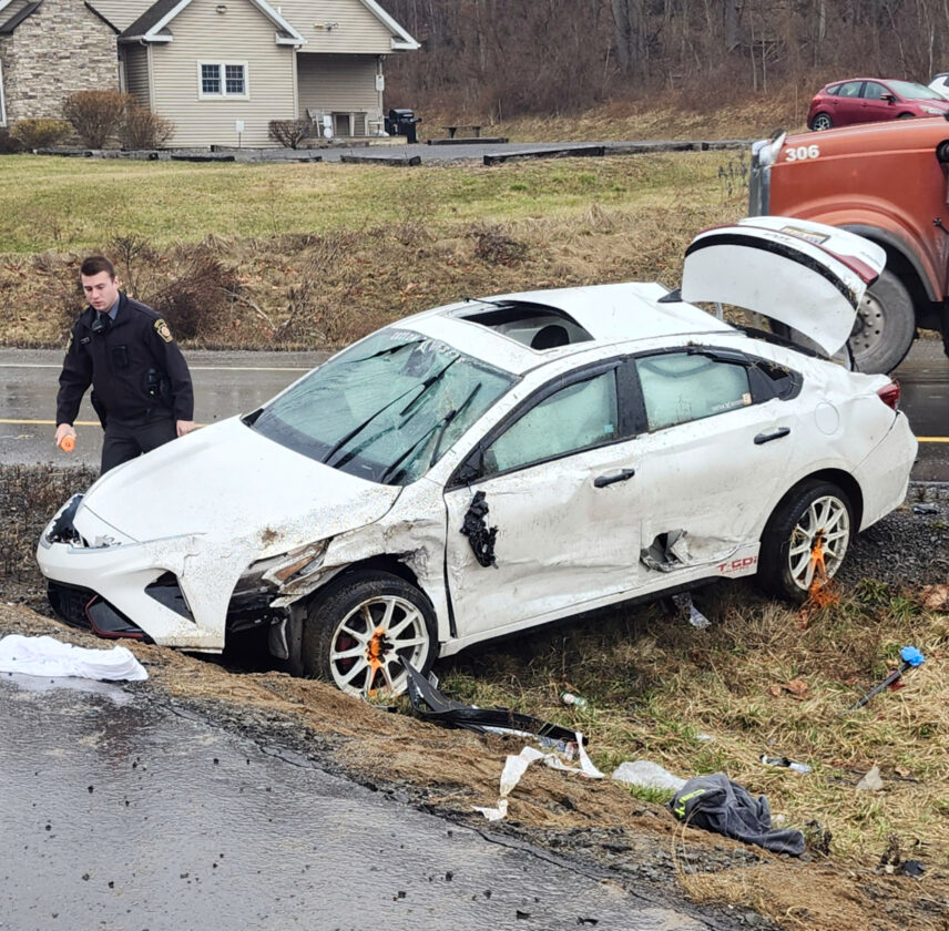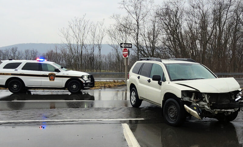 The driver of a Kia, seen at right, Daniel Osborne, 48, of Lock Haven, and the driver of a Mitsubishi Endeavor, seen above, Mark Caruso, 73, of Lock Haven, were treated at UPMC Williamsport for injuries they suffered when their vehicles collided in the southbound lanes of Route 220 at First Street in Woodward Township, Lycoming County, about 3:15 p.m. Friday, according to state police. Southbound traffic out of Williamsport was backed up for more than a mile. An off-duty paramedic from Jersey Shore Area EMS witnessed the crash and alerted 911 using his portable radio.