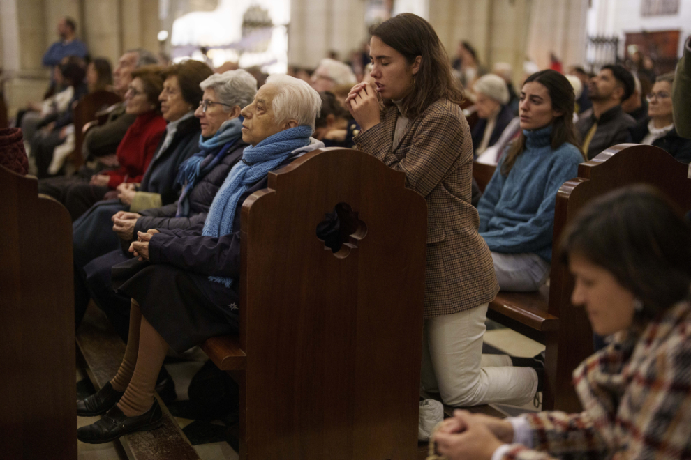 AP Photo/Manu Fernandez People pray for Pope Francis at Almudena Cathedral in Madrid, Spain, on Thursday, Feb. 27.