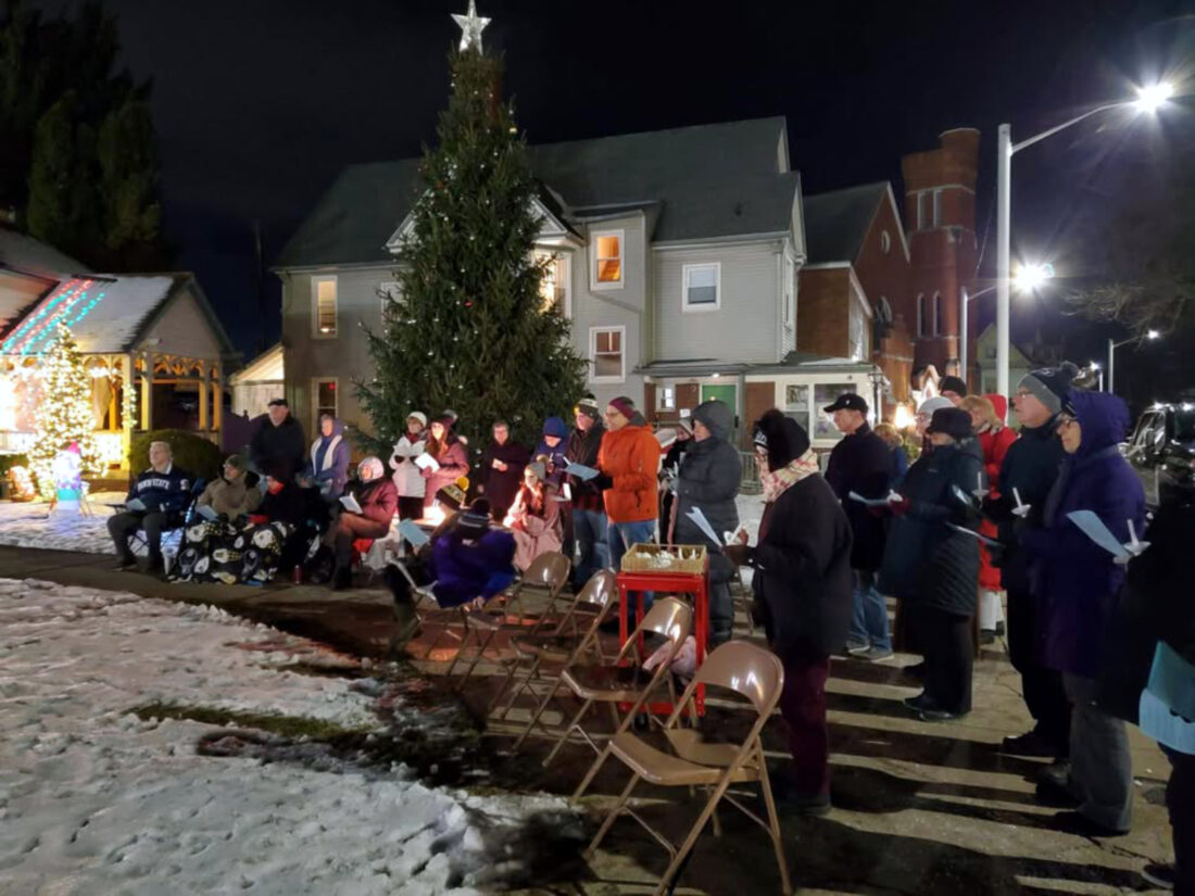 PHOTO PROVIDED Covenant United Methodist Church members and guests are pictured in Triangle Park during a previous Christmas in the Park service.