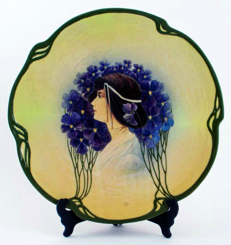 With its soft colors, flower motifs and asymmetrical twining lines, this ceramic charger, made circa 1900, fits right into the art nouveau movement. However, when it sold for $2,500 at Auctions at Showplace, it was described as “Jugendstil.” German for “young style,” named after the journal Die Jugend, it is the German term for what we call art nouveau.