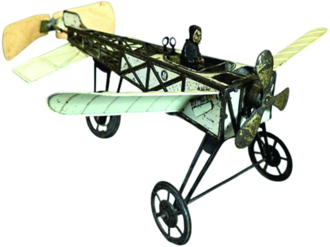 Today’s toy companies might be fueled by flights of fancy, but, in the early days of flight, real-life aircraft were imaginative enough. Many toy airplanes of the early 1900s were miniature copies of existing airplanes, like a windup Bleriot airplane by Gunthermann that sold for $1,080 at Bertoia Auctions.
