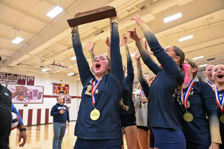 ALTOONA - Spiking their way to state competition. Saturday at Altoona, the Bald Eagle Area girls volleyball team punched their ticket to a home game and a District 6 Class AA championship as they defeated Richland, 3-0 (25-22, 27-25, 25-20) in front of a strong contingency of fans who made ...