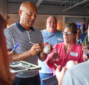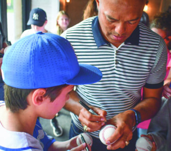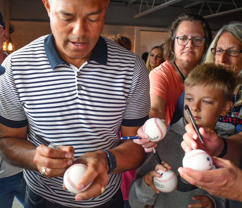 RALPH WILSON/For The ExpressHall of Fame pitcher, Mariano Rivera signs memorabilia for fans at the Williamsport/Lycoming Chamber of Commerce, Grand Slam Breakfast at Bald Birds Brewery in Jersey Shore on Tuesday. Rivera was induced into the Hall of Fame in 2019 after a 19-year career with the New York Yankees and holds the MLB record of 652 saves.