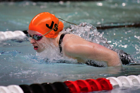 RALPH WILSON/ForThe Express Jersey Shore's Kate Butzler swims in the 200 yard Medley Relay during a PIAA District 4 Class AA swim meet at Williamsport Area High School on Wednesday, Feb. 28, 2024.
