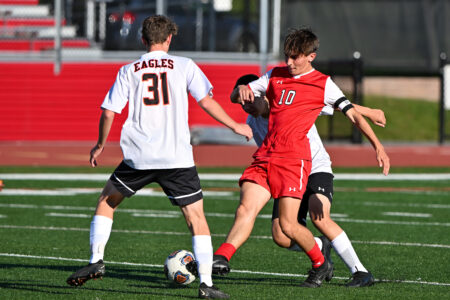 Gerasenko helped pace the offense with four goals, including three in the first half to complete a hat trick. Caton, John Servant and Conelle Stabinger all added one goal while Stabinger and Caton both added assists. Bellefonte’s offense dominated throughout the entire 80 minutes. The Raider forwards held possession for a good part of the game, especially in the first half, and the midfielders did a solid job feeding them the ball.