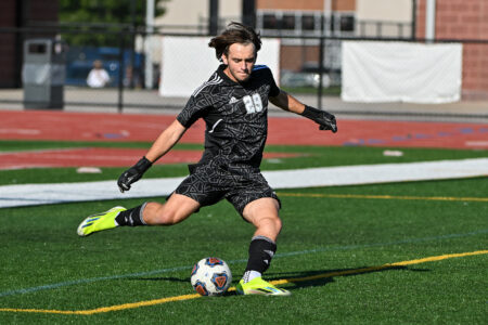 - Bellefonte junior goalkeeper Elijah Davis prepares to kick a ball during Thursday afternoon’s home game against Somerset at Rogers Stadium. TIM WEIGHT/For The Express