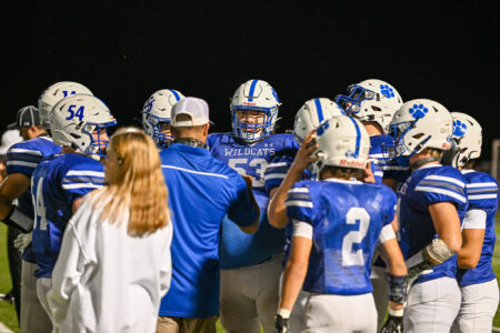 - TIM WEIGHT/For the Express Central Mountain huddles up before a football game on Friday, Sept. 19, 2025, at Malinak Stadium. The Wildcats fell 35-7.