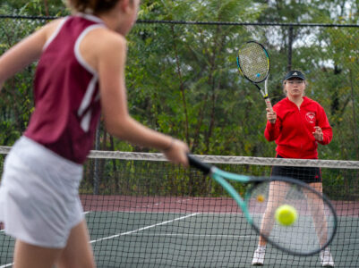 At No. 3 singles, Reem led 1-0 and 2-1 before extending her lead to 4-1 in the first set. English would make it a 5-2 game, but Reem was able to close it out. In the second set, English made things interesting by staying with Reem, but the Lancer would walk away with a 6-3 win to secure the match.
