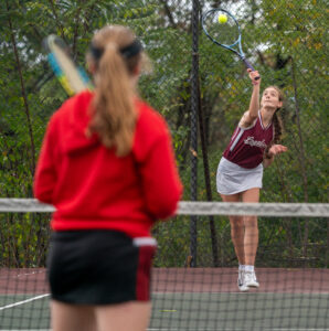 “We started off with seven girls this season, we had to get two off the cheerleading squad so that we had a few extras to have nine girls. Throughout this whole season they just fought. To be able to even compete in this was a feat of itself,” Heiser said. “I couldn’t be more proud. Obviously, it didn’t go the way we had hoped, but you know they still played a great match today. We’re looking forward to doubles on Saturday. We have four girls who are going to play doubles on Saturday. We’re looking forward to that.”